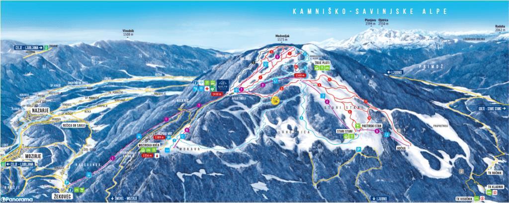 • Hora Raduha (2062 m n. m., cca 22 km) - oblíbený cíl pro horské turisty s nádhernými výhledy na Alpy a údolí Savinja