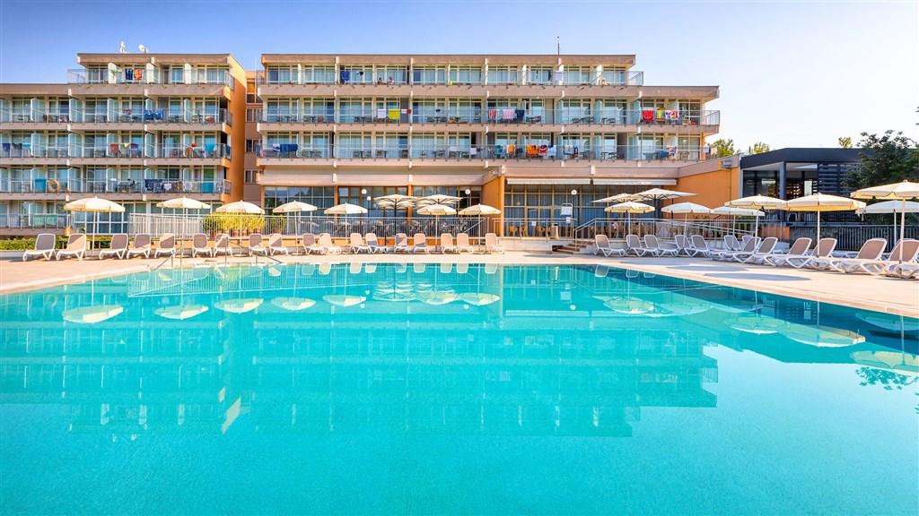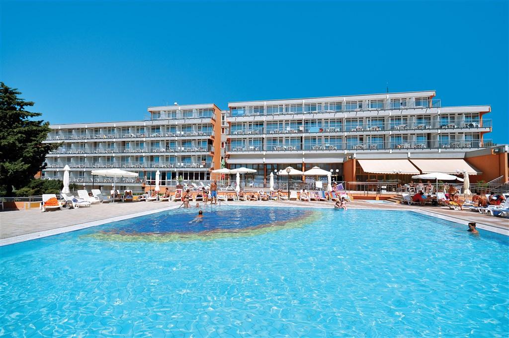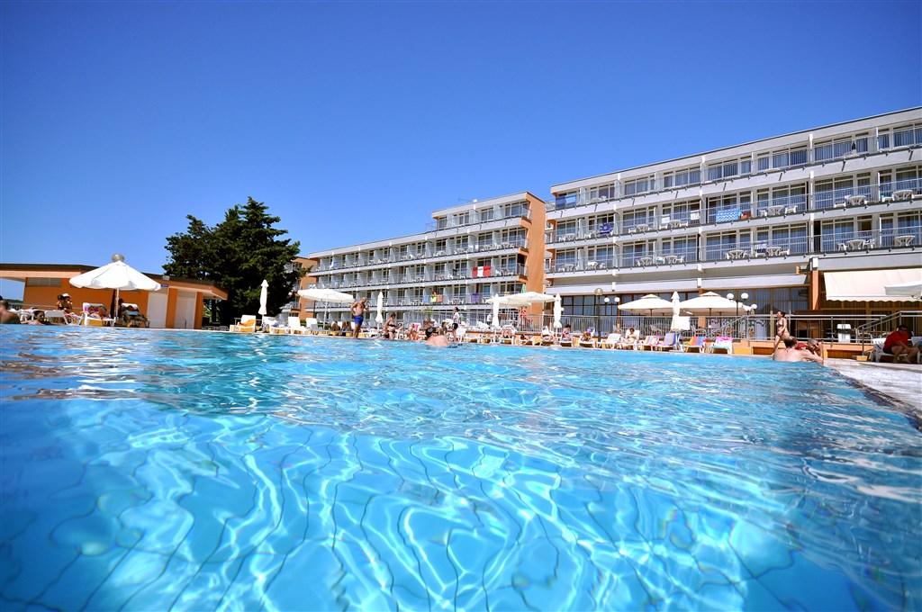 čiastočne zrenovovaný hotel • vhodný na rodinnú dovolenku s deťmi • cca 150m od hotela úzka dlhá prírodná štrkovo - kamenistá pláž s upravenými plochami na slnenie • neďaleko mestská piesočnatá pláž • vhodná pre malé deti, pozvoľne sa zvažuje a v mori je piesok • ležadlá a slnečníky za poplatok |