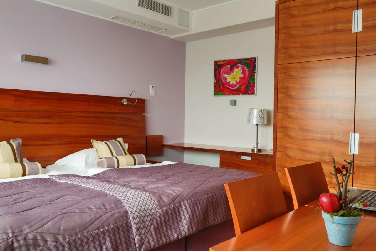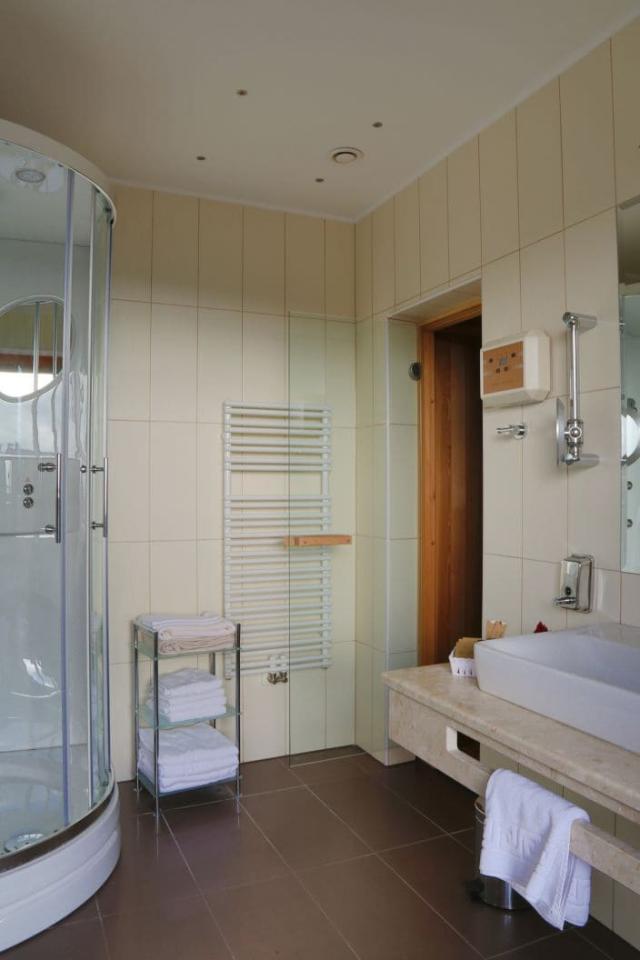 prepojené izby), prípadne suita s vlastnou masážnou vaňou a fínskou