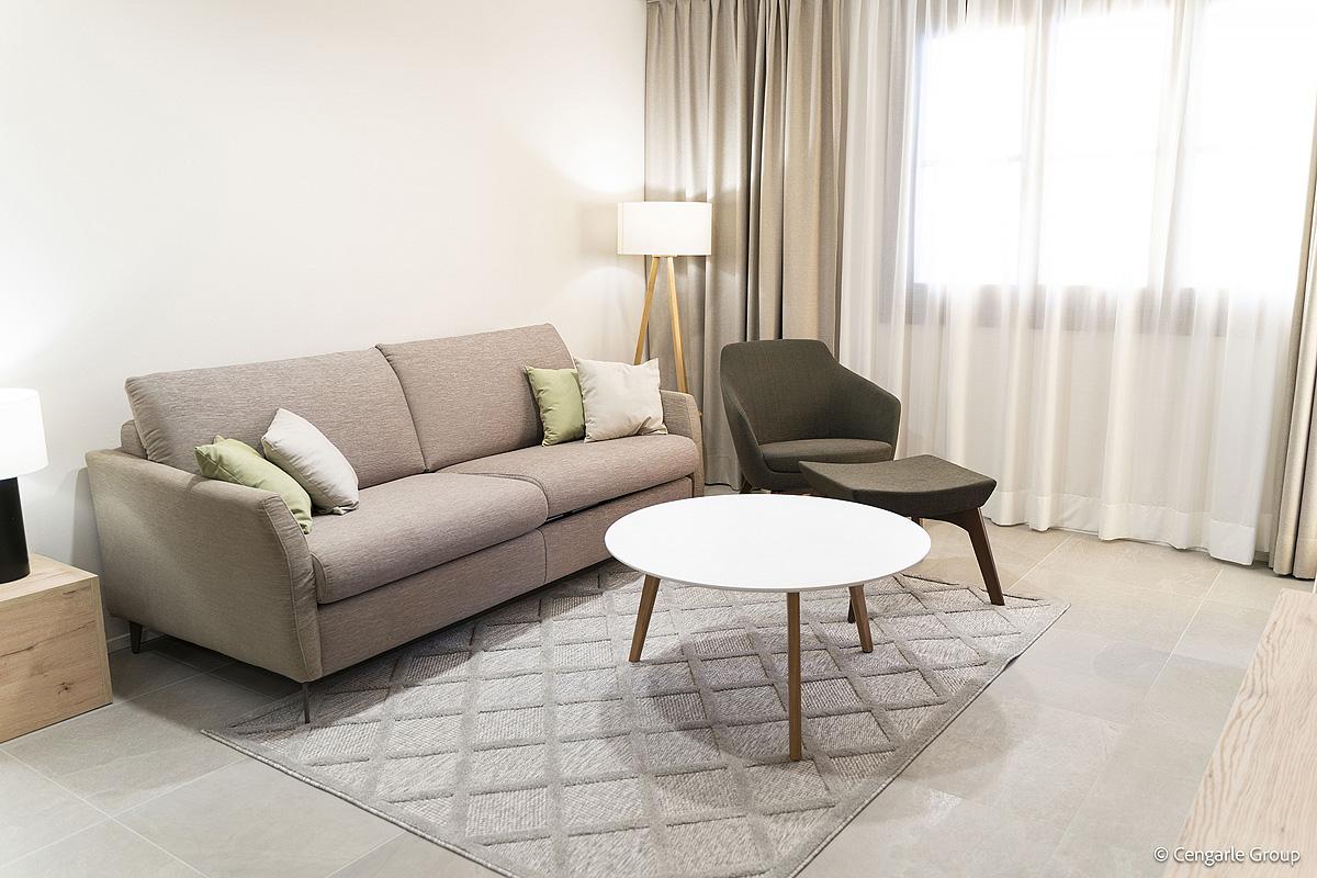 obývacia izba s kuchynským kútom a rozkladacím gaučom pre 2 osoby,