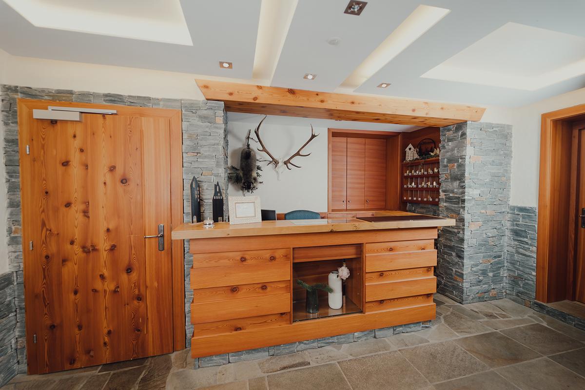 | malá recepcia, reštaurácia vyhradená pre hotelových hostí / bar,