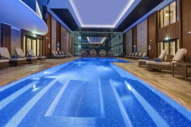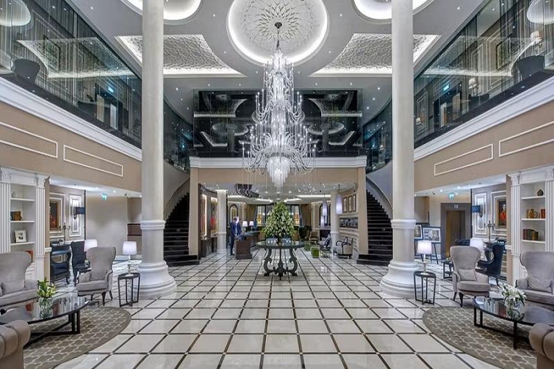 Hotel Dukes The Palm je situován na Palm Jumeirah. Hosté mohou relaxovat v řece nebo využít vybavení pro vodní sporty na pláži. Hotel disponuje 279 luxusně vybavenými pokoji a 227 zařízenými apartmány s výhledem na Arabský záliv a kultovní panorama Mariny. Všechny pokoje a apartmány disponují satelitní TV s plochou obrazovkou, příslušenstvím pro přípravu čaje a kávy, prostornou šatní skříní, trezorem, župany, pantoflemi a toaletními potřebami značky Floris zdarma. Hotel dále disponuje restaurací Great British Restaurant (GBR), kde hosté mohou ochutnat to nejlepší z britské kuchyně. Hosté GBR mohou stolovat v jídelně s výhledem na panorama dubajské Mariny nebo využít restauraci s barem West 14th na pláži. Dukes Bar má v nabídce nejlepší světová martini. K dalšímu vybavení hotelu patří i posilovna s nejmodernějším vybavením ve 14. patře s francouzskými okny a nádherným výhledem na panorama dubajské Mariny. Hosté mohou využít i kadeřnický salón.