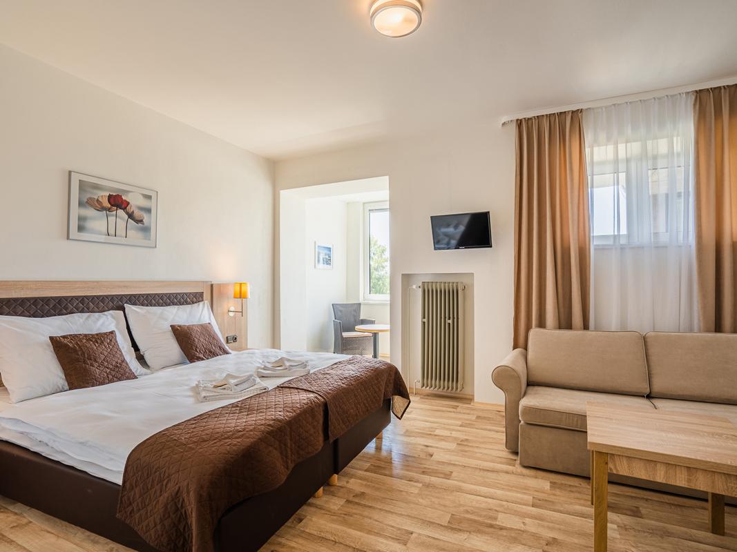 alebo 2 samostatnými lôžkami, sociálne zariadenie #Standard 2+2: 18 m² - izba s manželskou posteľou alebo 2 samostatnými lôžkami, s možnosťou prístelky formou rozkladacieho gauča pre až 2 deti do nedovŕšených 12 rokov, sociálne zariadenie #Standard 3: 18 m² - izba s manželskou posteľou alebo 2 samostatnými lôžkami a 1 samostatným lôžkom, sociálne zariadenie #Standard 4: 20 m² - izba s manželskou posteľou alebo 2 samostatnými lôžkami a 2 samostatnými lôžkami, sociálne zariadenie #Family 2+3: 27 m² - izba s manželskou posteľou alebo 2 samostatnými lôžkami, s možnosťou prístelky formou rozkladacieho gauča pre 1 dieťa do nedovŕšených 12 rokov a ďalej poschodová posteľ pre až 2 deti do nedovŕšených 12 rokov, sociálne zariadenie |