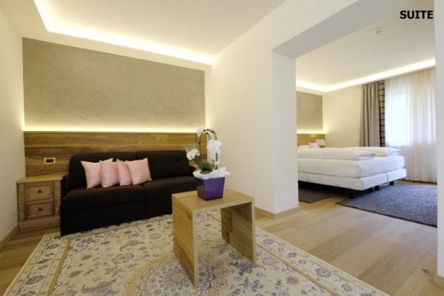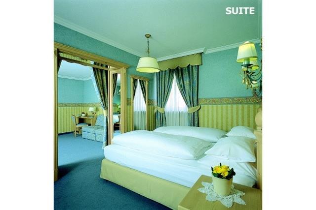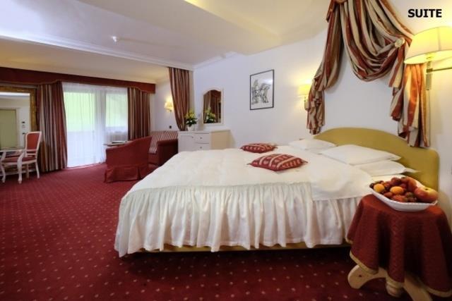 SUITE: (30-40 m2, max. 4 osoby) priestranné dvojlôžkové izby s možnosťou dvoch prísteliek, niektoré majú dve čiastočne oddelené miestnosti, SPR+WC, fén, župan, TV/SAT, Wi-Fi, trezor, telefón, minibar. |