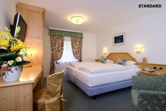 STANDARD (18-21 m2, max. 2 osoby): dvojlôžková izba, SPR+WC, fén, župan, TV/SAT, Wi-Fi, trezor, telefon, minibar. |