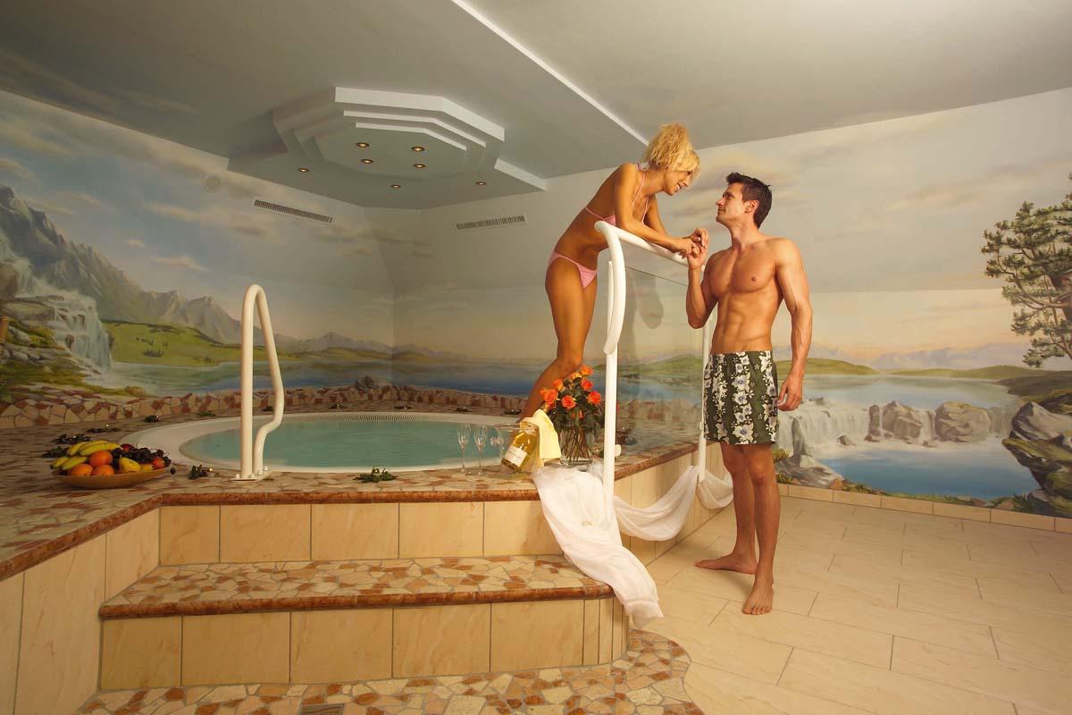 vírivka, 5 rôznych druhov sáun, 3× relaxačný kútik s ležadlami, vybrané bylinkové čaje; posilňovňa