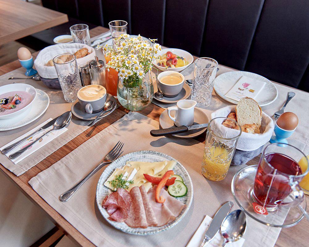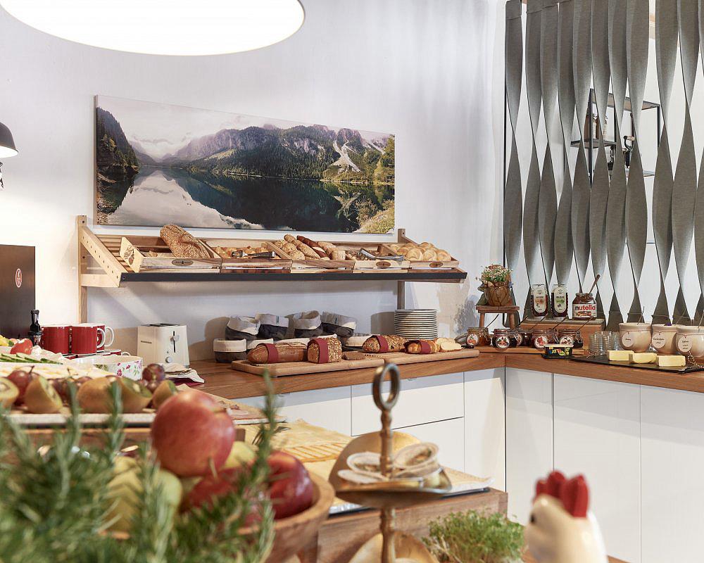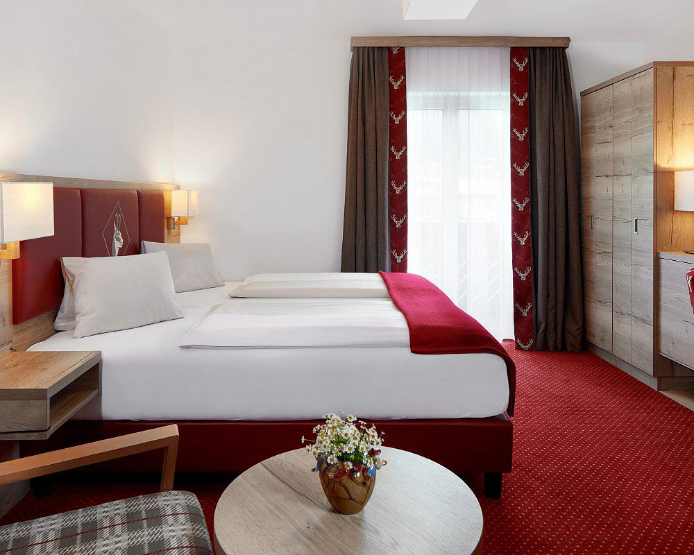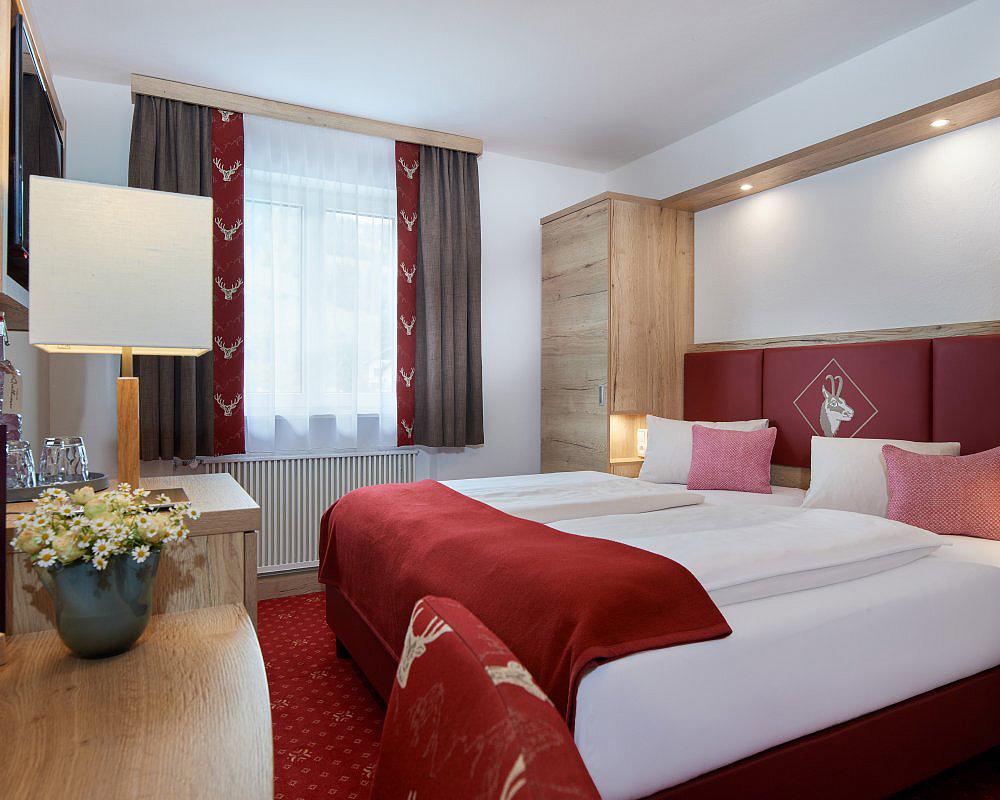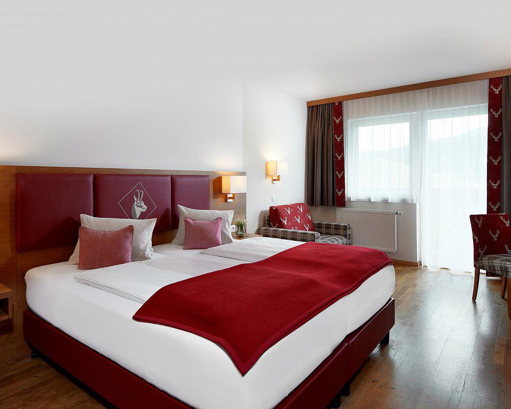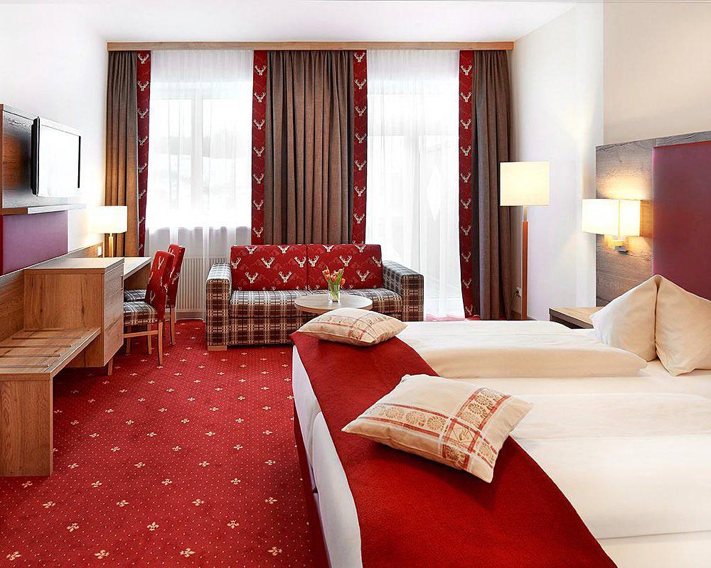 sociálne zariadenie;izby spravidla v tradičnom štýle #Hornspitz 2+2: 32 m² - izba s manželskou posteľou a prípadne rozkladacím gaučom či 1 až 2 prístelkami až pre 2 deti do nedovŕšených 15 rokov, sociálne zariadenie; izby spravidla v tradičnom štýle #Gamsfeld 2: 24 m² - izba s manželskou posteľou, sociálne zariadenie, balkón; izby v modernom alpskom štýle #Gamsfeld 2+2: 32 m² - izba s manželskou posteľou a prípadne rozkladacím gaučom či 1 až 2 prístelkami až pre 2 deti do nedovŕšených 15 rokov, sociálne zariadenie, balkón; izby v modernom alpskom štýle #Standard 1: izba s 1 samostatným lôžkom, sociálne zariadenie #Dachstein West 2+1: 18 až 32 m² - izba s manželskou posteľou a prípadne rozkladacím kreslom pre 1 dieťa do nedovŕšených 15 rokov, sociálne zariadenie, balkón či terasa; izby v modernom alpskom štýle |