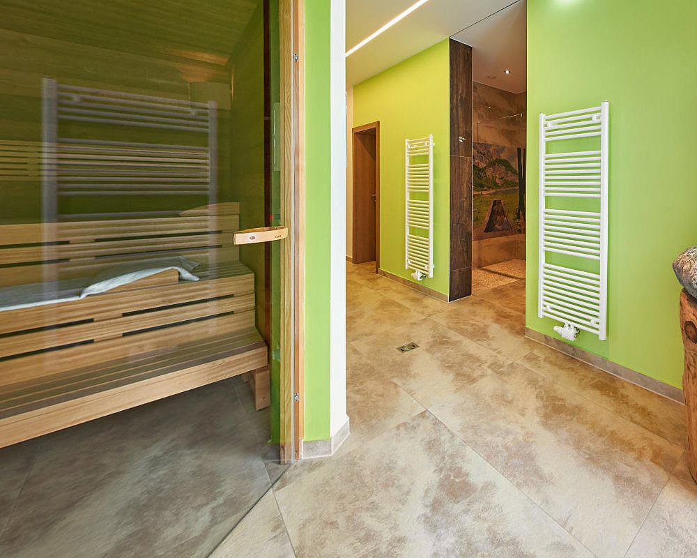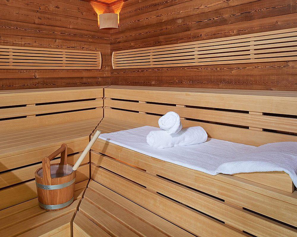 fínska sauna, bio sauna, relaxačný kútik a terasa s lehátkami |