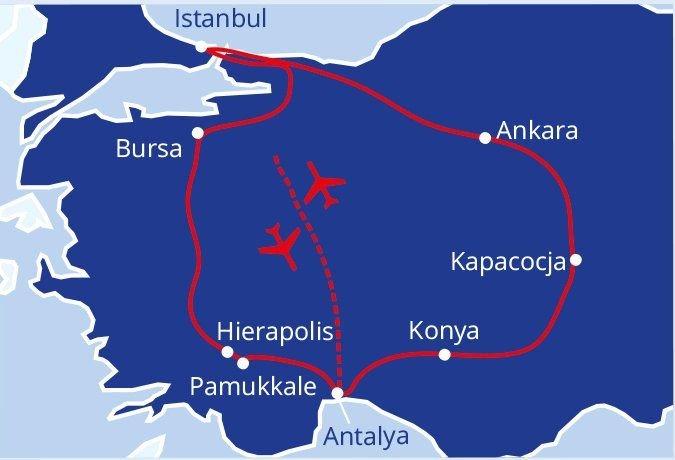 • Istanbul - Kappadokie - Pamukkale - Ankara - Hierapolis - Antalye - Konya - Göreme - Bursa